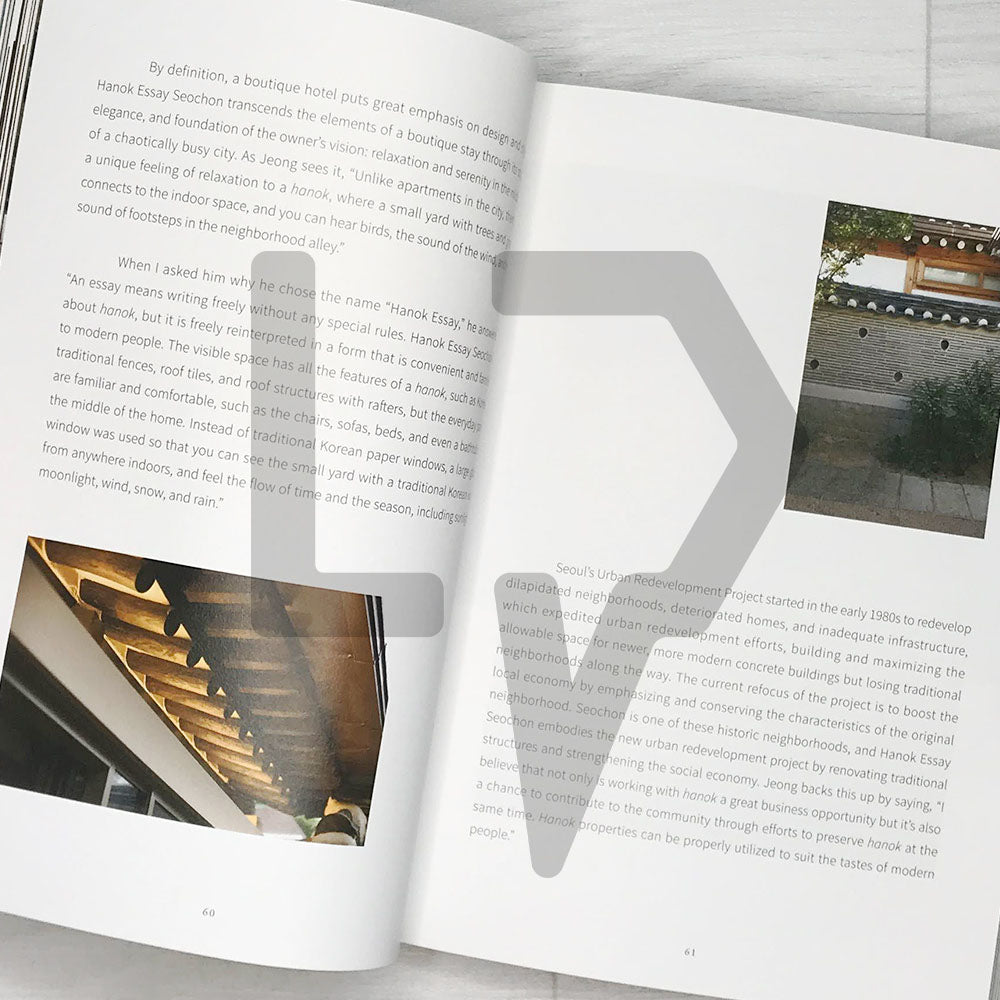 Hanok Today is not an informational book that answers all of your questions with detailed descriptions about every hanok in every photo. Rather, the authors distill the individuality and essence of each hanok and beautifully arrange the images to convey the meaning of the space, inviting readers to see, feel, and think for themselves. Follow along with the text and photographs through the eyes of the two authors and add your own interpretation to them as you go.