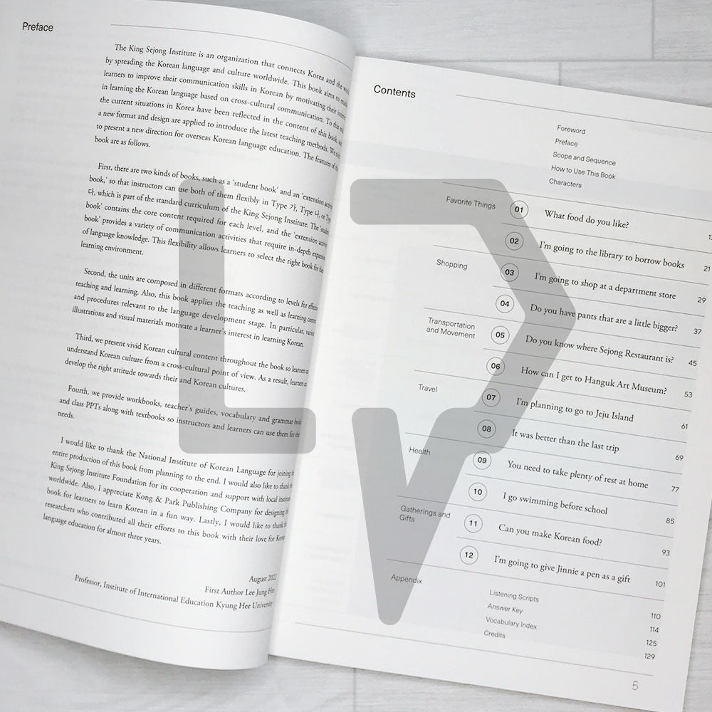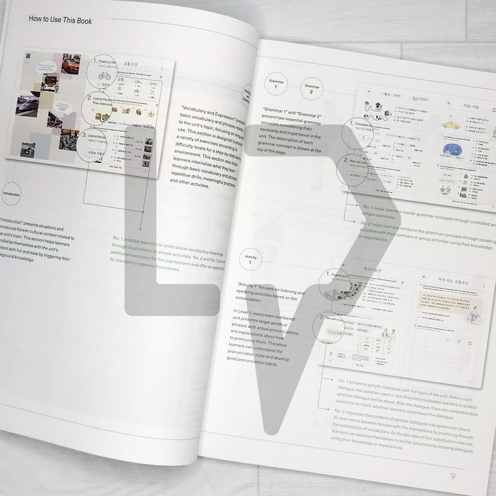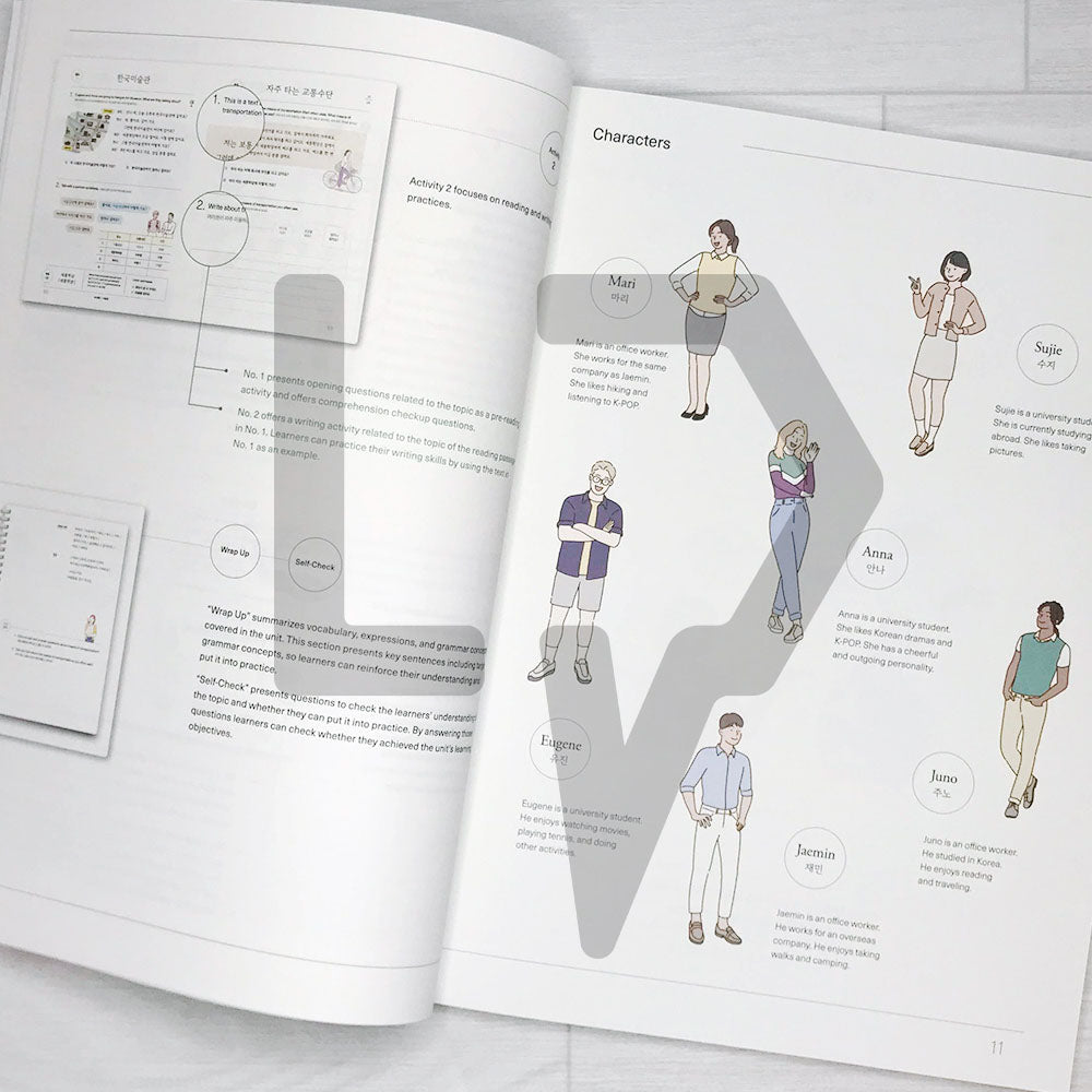 <Sejong Korean> consists of a total of eight basic textbooks, four books each for beginners 1A to 2B and intermediate 3A to 4B, the standard curriculum of Sejong Institute.