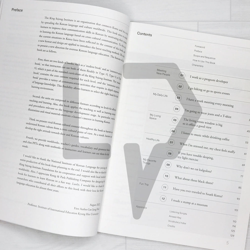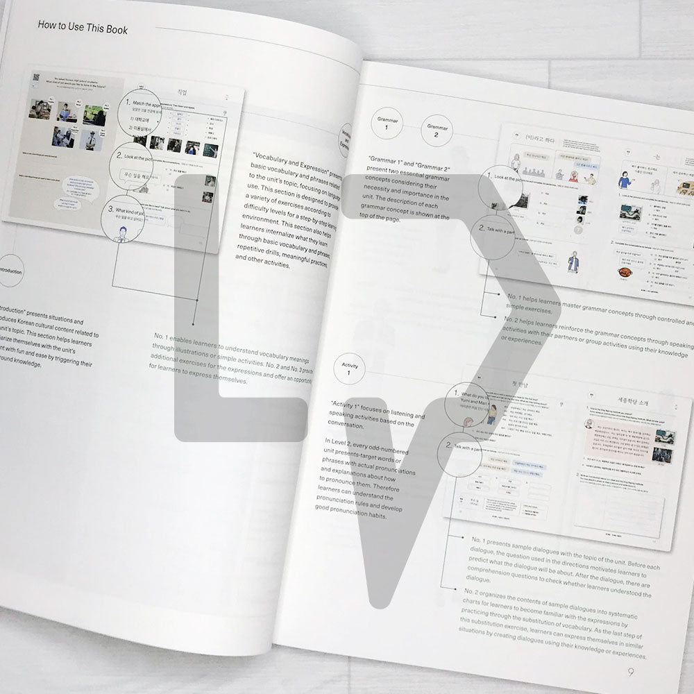 <Sejong Korean> consists of a total of eight basic textbooks, four books each for beginners 1A to 2B and intermediate 3A to 4B, the standard curriculum of Sejong Institute.