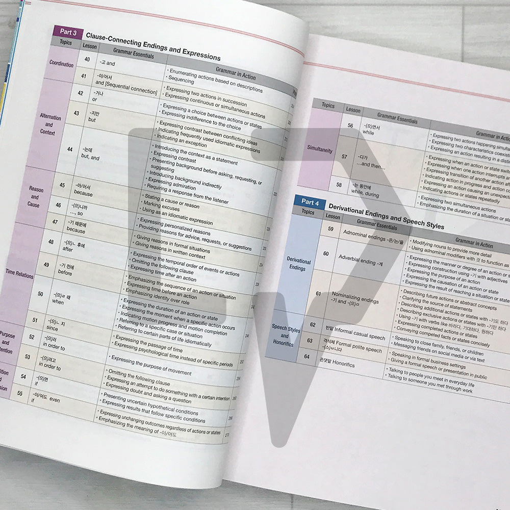 The book uses familiar, approachable terminology to help learners who are not yet comfortable with grammatical terms, and it highlights differences in nuance between Korean and English as well as subtle distinctions between similar grammar patterns to ensure learners can apply grammar effectively in conversation. Life Pattern Korea.