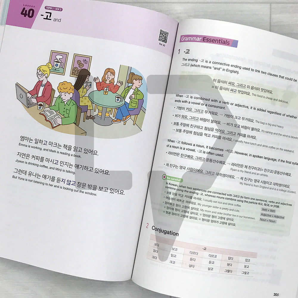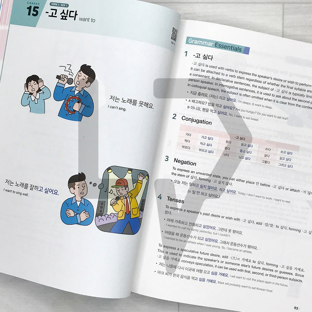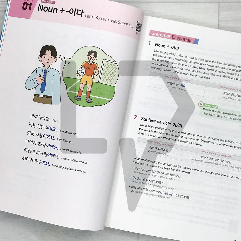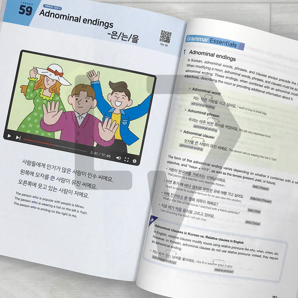 The core grammar points are clearly categorized by basic concepts, usage, and tense, with concise explanations and practical examples for each situation. Rich example sentences enable learners to see how grammar is used in context, making this a learner-centered grammar textbook. Life Pattern Korea. Additionally, the book provides QR codes that link to practice problems for learners to review and apply what they’ve studied, as well as explanations in Korean for instructors using the book in classroom settings. Life Pattern Korea.