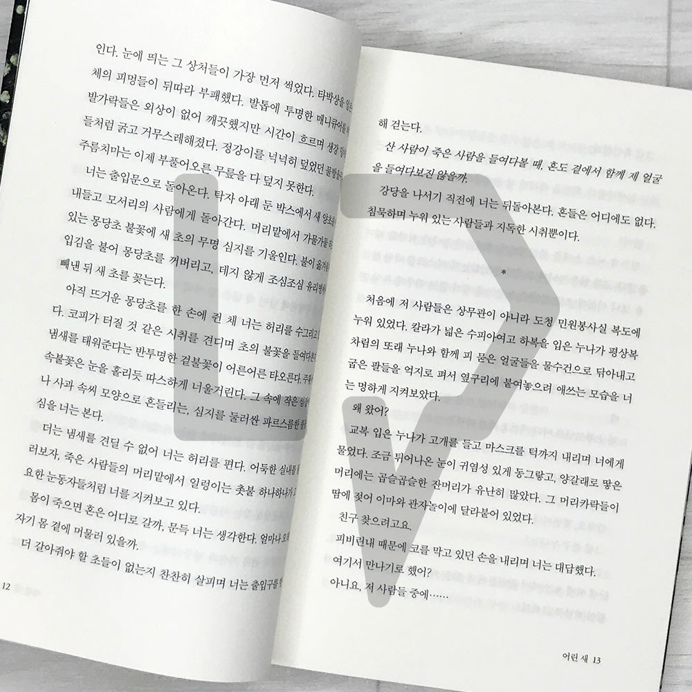 ! All the books we sell have a small mark or label on either the top or bottom edge of the book, placed by us or the publisher/distributor. This is a common practice in Korea to verify authenticity and track the distribution route of the books.