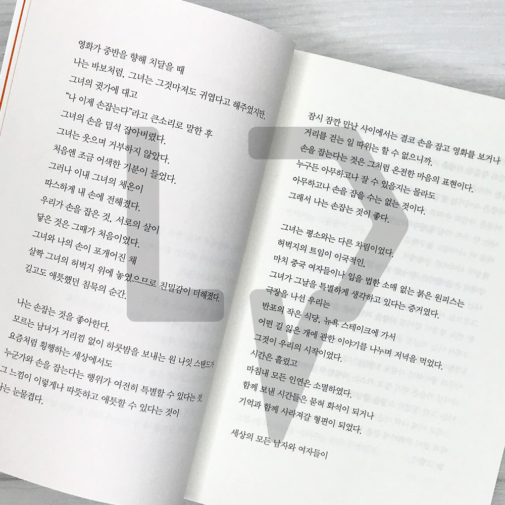 ! All the books we sell have a small mark or label on either the top or bottom edge of the book, placed by us or the publisher/distributor. This is a common practice in Korea to verify authenticity and track the distribution route of the books.