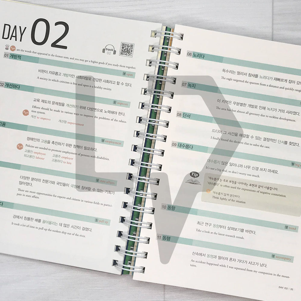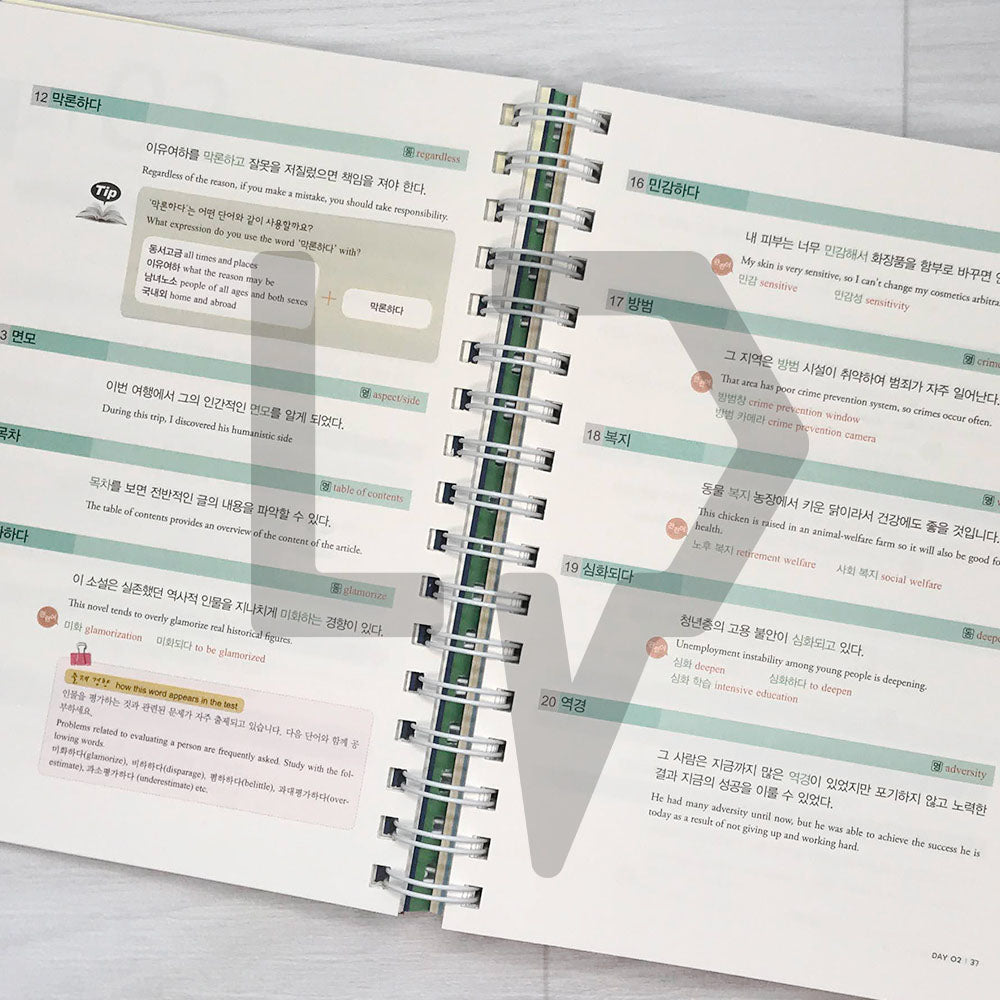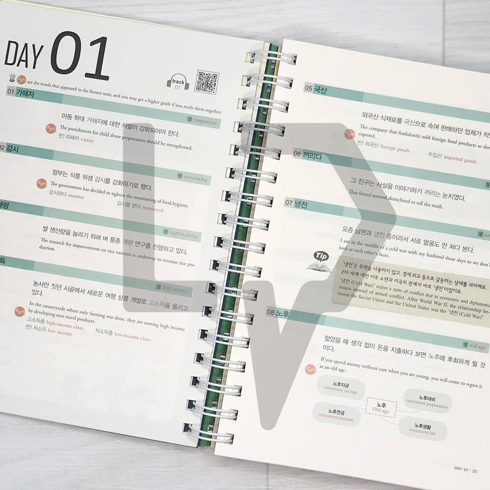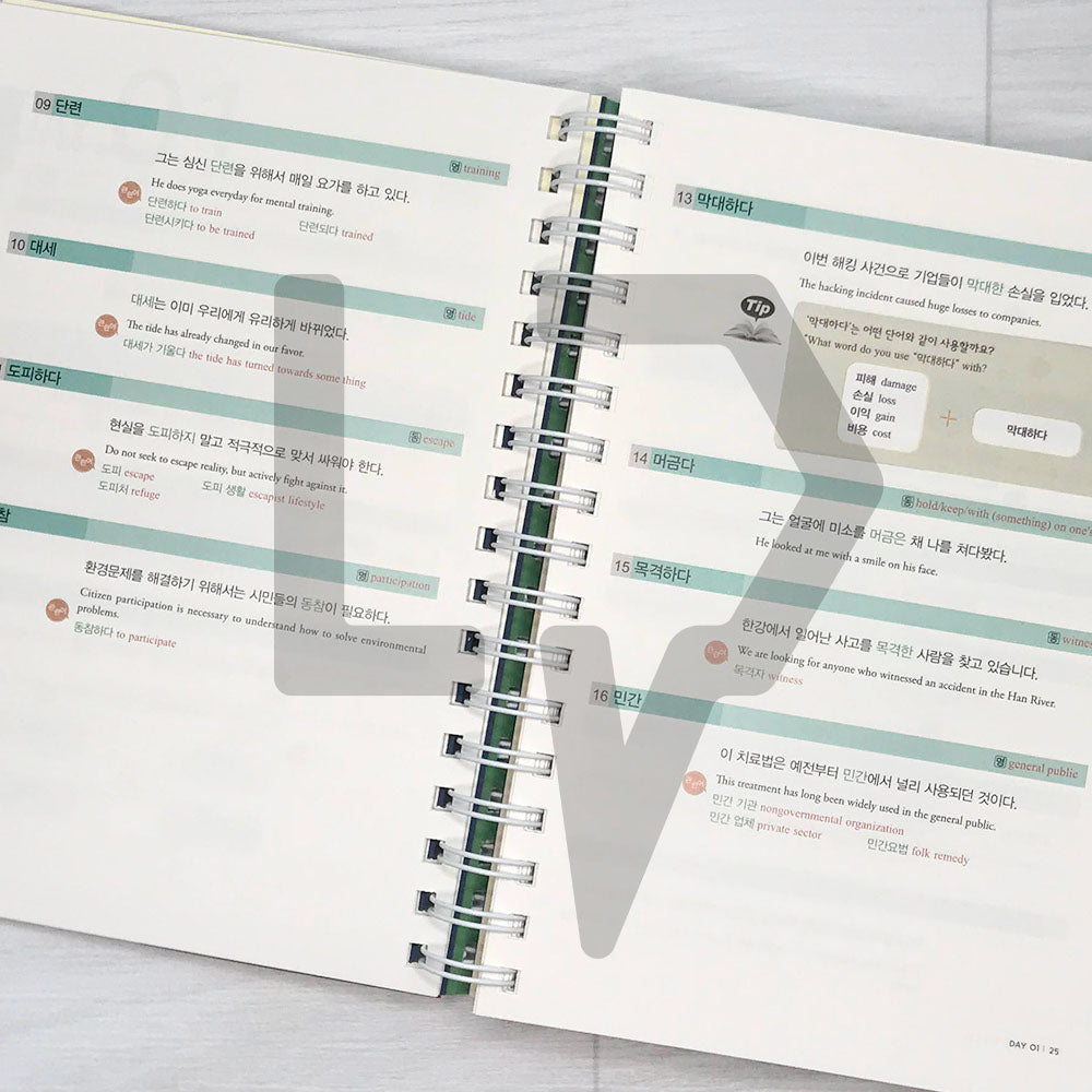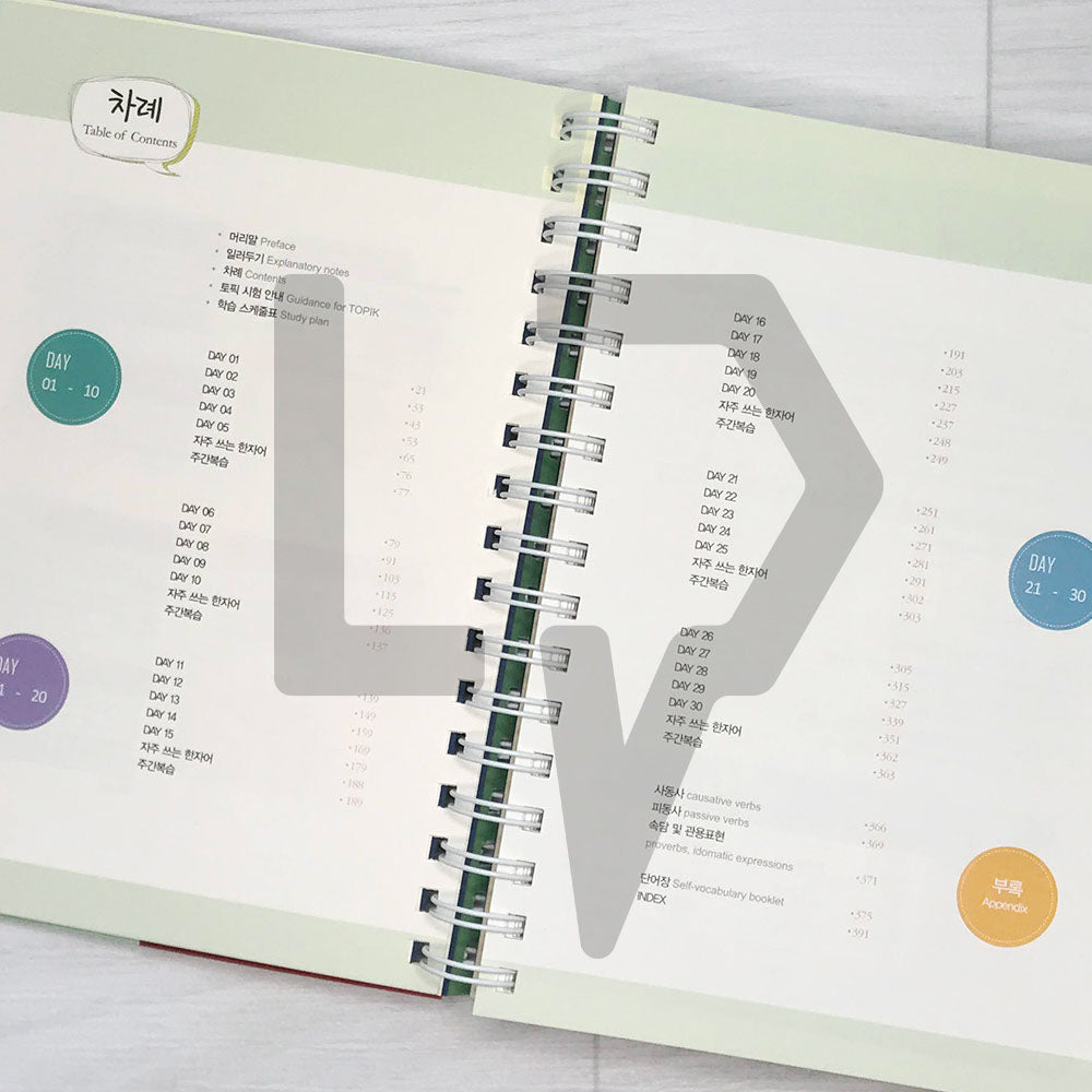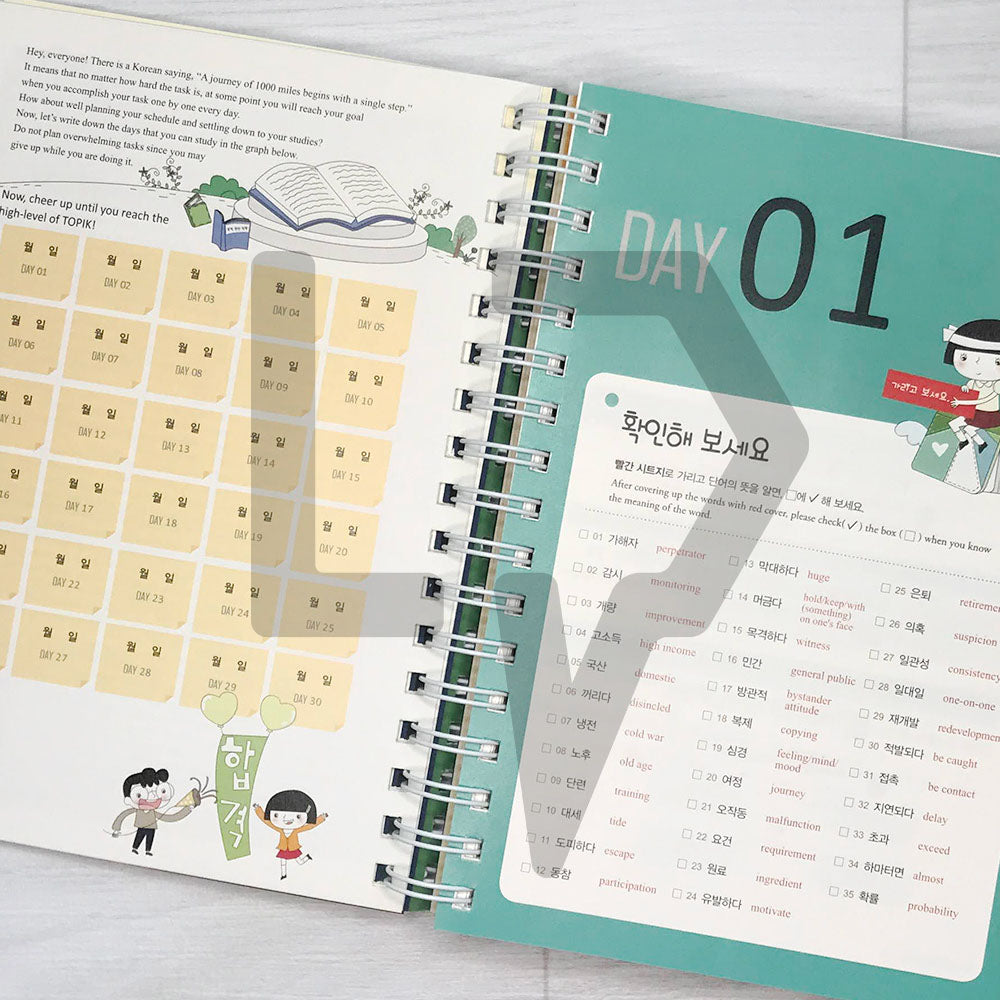 Consist of the words that appeared in past TOPIK and made it in a 30 days curriculum