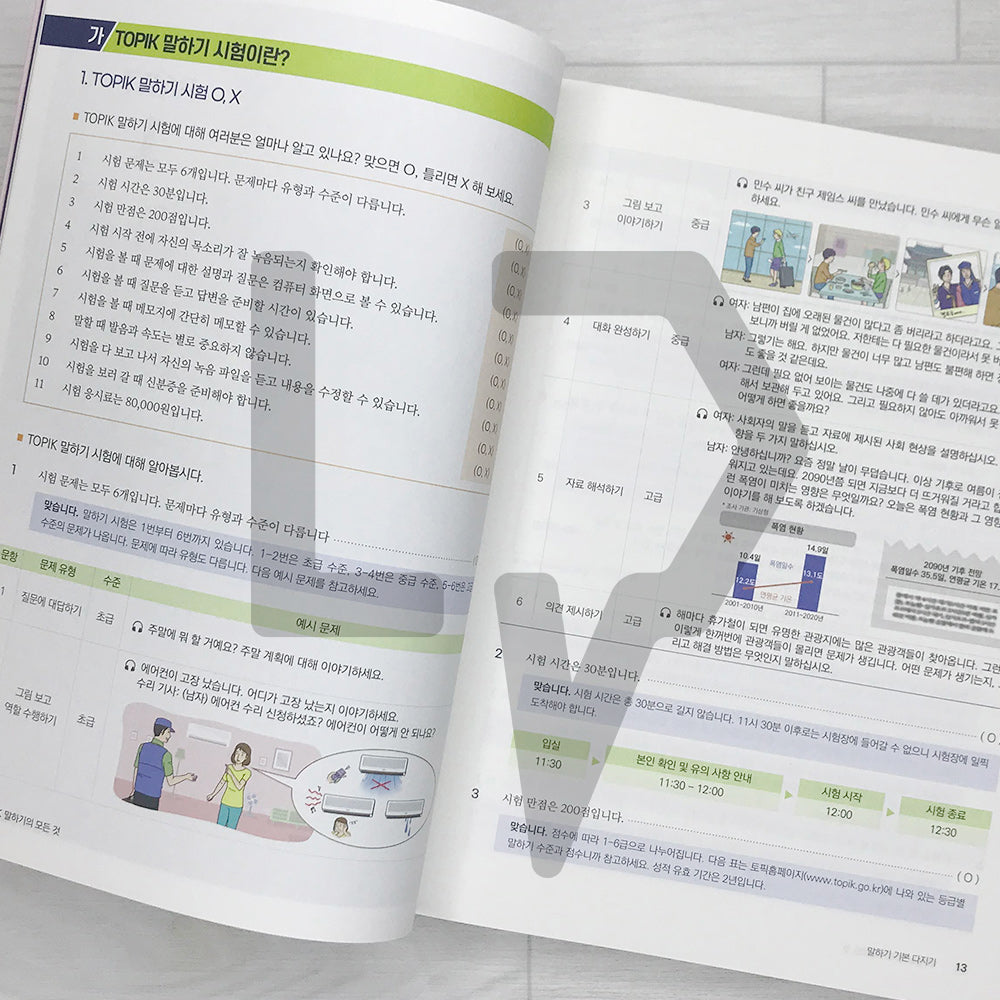 TOPIK Speaking Test and Speaking Skills at Once! Carefully read the information about the speaking test. Before checking the types of speaking test, assess your basic skills. Life Pattern Korea. If your basic skills are lacking, practice with ‘Basic Training’. As a preparation step, check the information for each type of question. Look at the practice questions and practice speaking sufficiently. Check your speaking skills with the expected questions. Answer the mock test speaking questions with confidence.