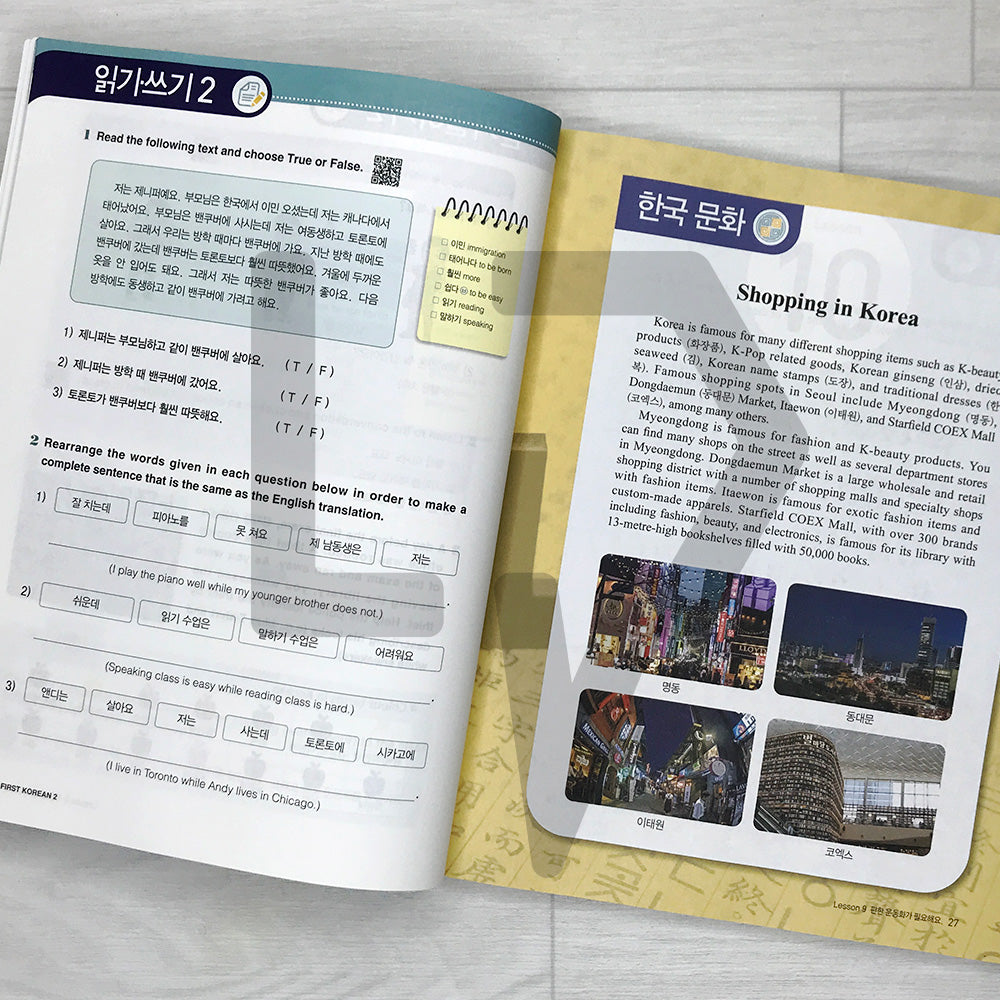 Developed by a faculty team with extensive Korean teaching experience in countries such as Canada, this textbook focuses on essential content for Korean language study. It provides unit-based learning objectives and various activities. Life Pattern Korea. QR codes are included for listening to Korean pronunciation and real-life conversations, and key grammar theories are thoroughly explained in English to help learners study more quickly and efficiently.