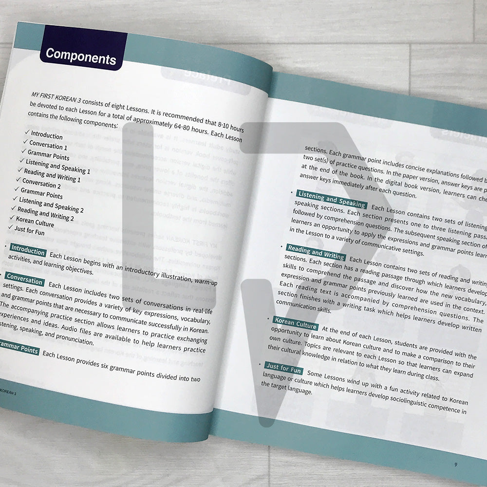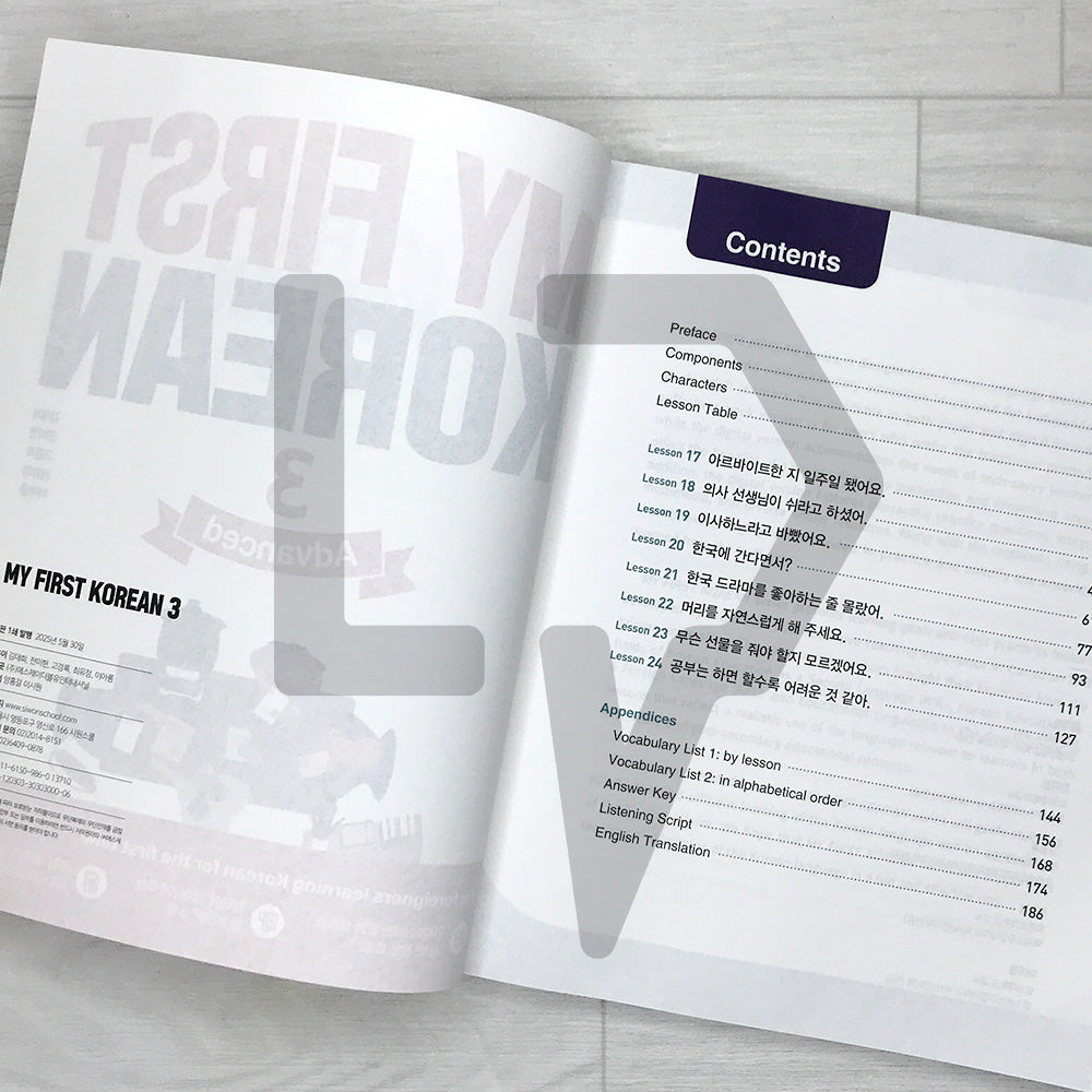 The My First Korean series by Siwon School integrates a main textbook and workbook for a comprehensive learning experience. This series was developed for foreigners who are new to the Korean language, consisting of My First Korean 1 for the Beginner level, My First Korean 2 for the Intermediate level, and My First Korean 3 for the Advanced level. Life Pattern Korea.