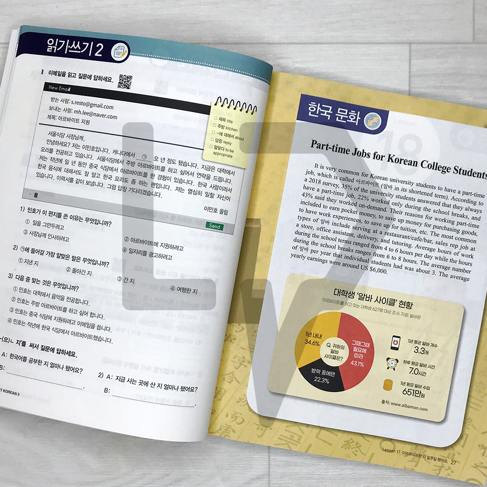 Developed by a faculty team with extensive Korean teaching experience in countries such as Canada, this textbook focuses on essential content for Korean language study. It provides unit-based learning objectives and various activities. QR codes are included for listening to Korean pronunciation and real-life conversations, and key grammar theories are thoroughly explained in English to help learners study more quickly and efficiently. Life Pattern Korea.