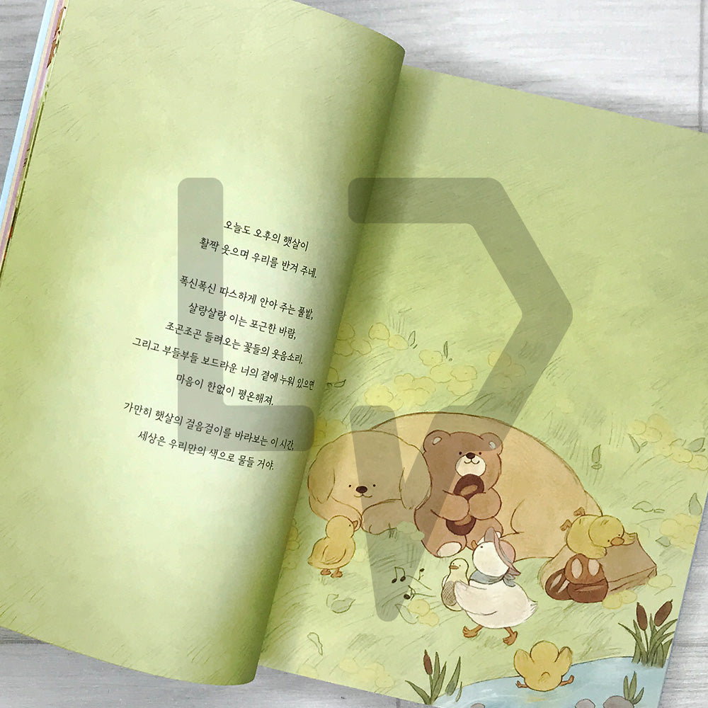 In the natural village, another ordinary yet lovely day flows quietly. The birds wake the morning with beautiful voices, the bears lie on warm grass to dry their hearts, and the rabbits stay up all night under the starlight so that dreams do not lose their way. No one here is in a hurry. Life Pattern Korea. Simply feeling the sunlight, listening softly to the insects' songs, and looking up at a calm sky is enough for a full day.
