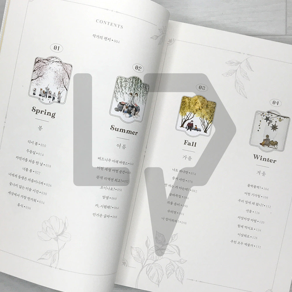 “Whether with colored pencils, paints, markers, or oil-based pens—this is a coloring book meant to be used however your heart wishes, written in however your heart desires. May it become a small source of happiness and comfort as you keep your own ‘every season' and ‘every moment.'” Life Pattern Korea.