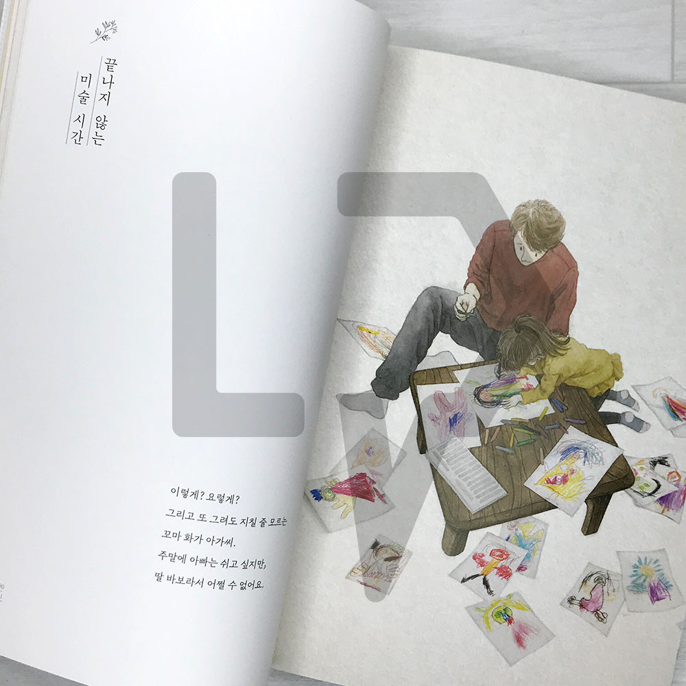 Rosa's watercolor illustrations, which capture ordinary everyday moments and transform them into beautiful and lyrical scenes, are frequently selected as “Notable Artworks” on Naver Grafolio. Her emotional daily-life coloring book All Seasons, Every Moment includes 30 highly collectible original artworks and delicate sketches printed separately, allowing you to color and draw with colored pencils, paints, markers, oil-based pens, and more. Life Pattern Korea.