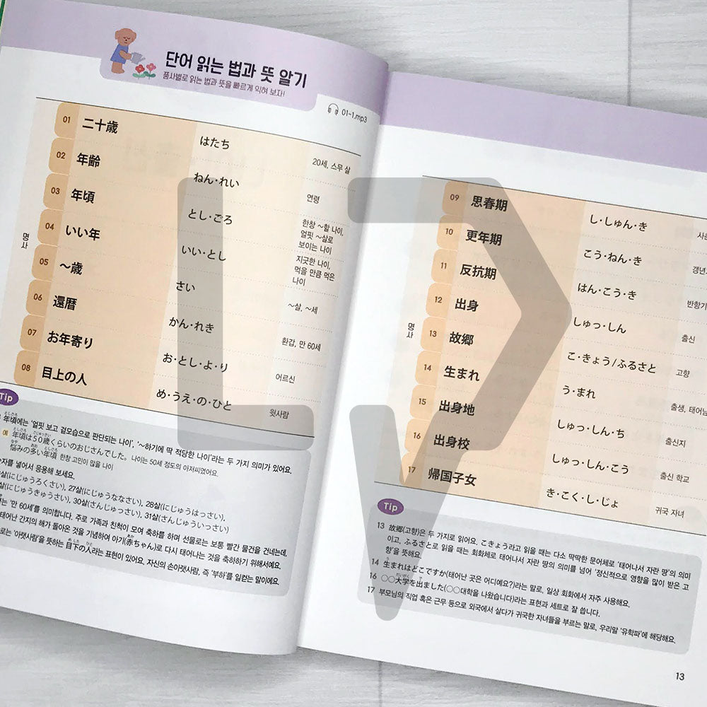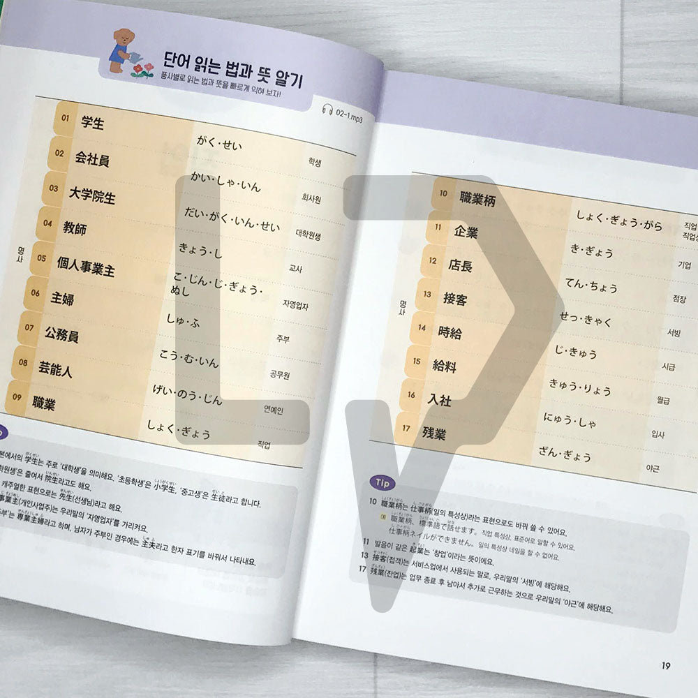 The book, which consists of a total of 50 units, first learns how to read words and the meaning of words, and checks the use of words through conversational texts. Additional expressions and information that are helpful for conversation are abundant in the tip. The author's YouTube lecture leads the learning meticulously, so you can easily progress on your own. If your goal is to improve your conversation skills, not test scores, and if you are curious about words that native speakers use a lot or everyday words in Japanese these days, this book can be a good choice.