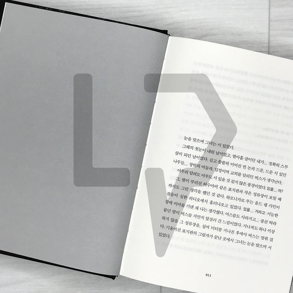 ! All the books we sell have a small mark or label on either the top or bottom edge of the book, placed by us or the publisher/distributor. This is a common practice in Korea to verify authenticity and track the distribution route of the books.