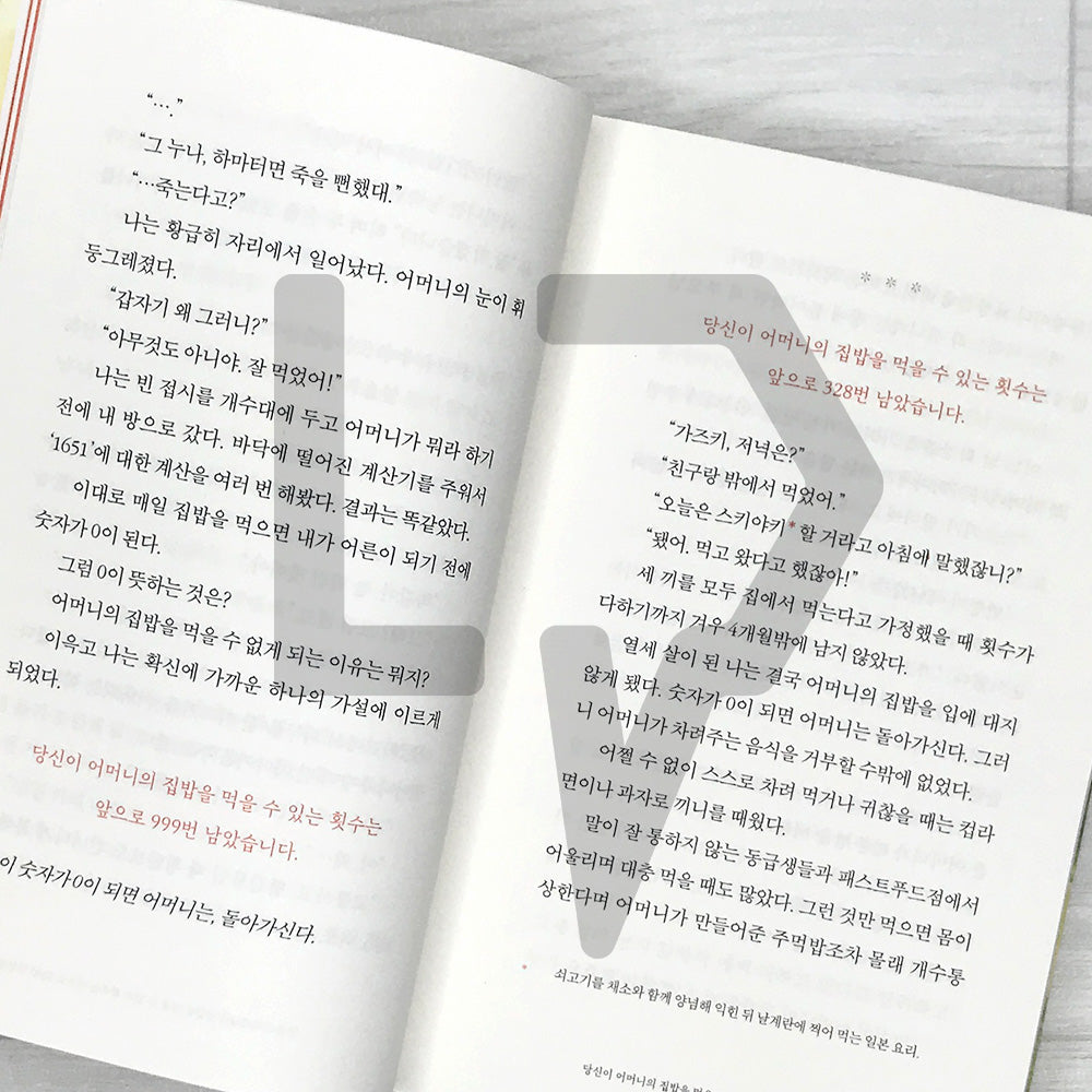 You Have 328 Chances Left to Eat Your Mother's Home-Cooked Meals - Original Novel of the Film Number One μ΄λ¨Έλμ μ§λ°₯μ λ¨Ήμ μ μλ νμλ 328λ² λ¨μμ΅λλ€
