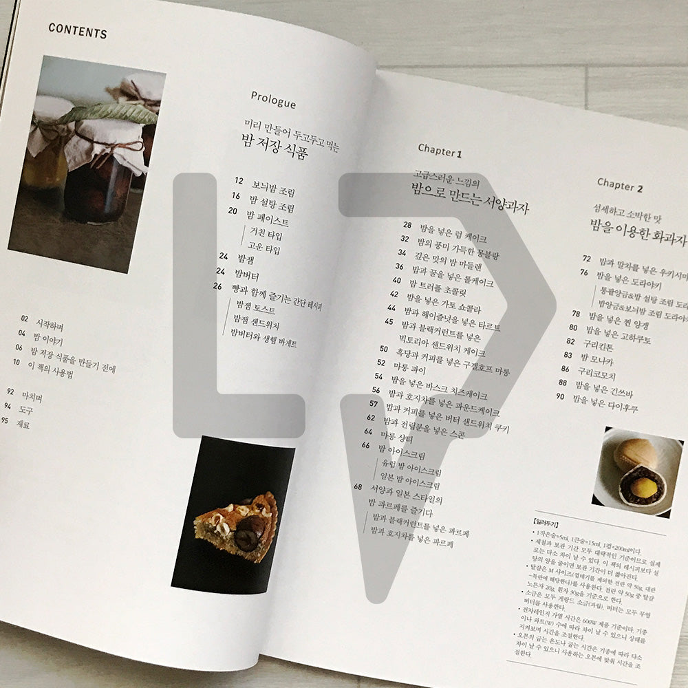 With these preserved chestnut products ready, readers can move on to a variety of Western-style baked goods. Examples include pound cake generously filled with whole simmered chestnuts, honey-scented roll cake, the French classic Mont Blanc, marron pie, scones, parfaits, and ice cream. Life Pattern Korea. With detailed explanations and step-by-step photos, readers can easily create elegant Western desserts rich in the flavor and aroma of chestnuts.
