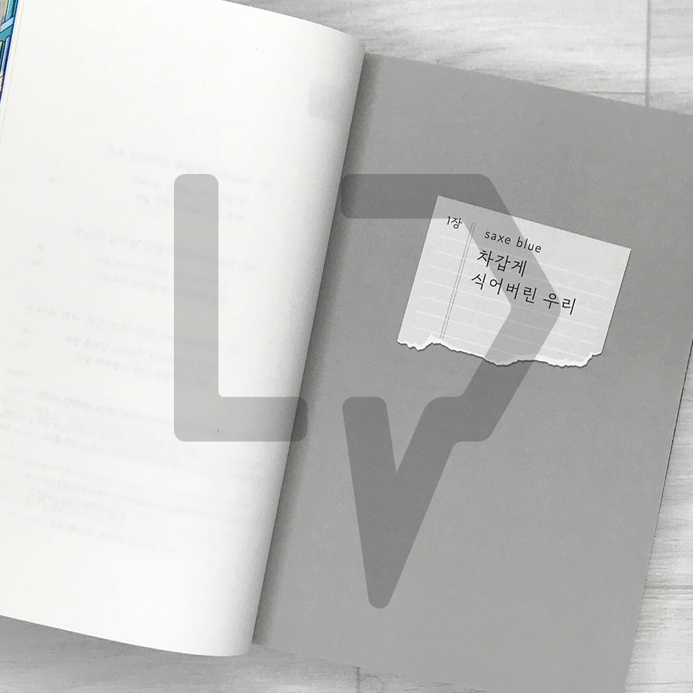 ! All the books we sell have a small mark or label on either the top or bottom edge of the book, placed by us or the publisher/distributor. This is a common practice in Korea to verify authenticity and track the distribution route of the books.