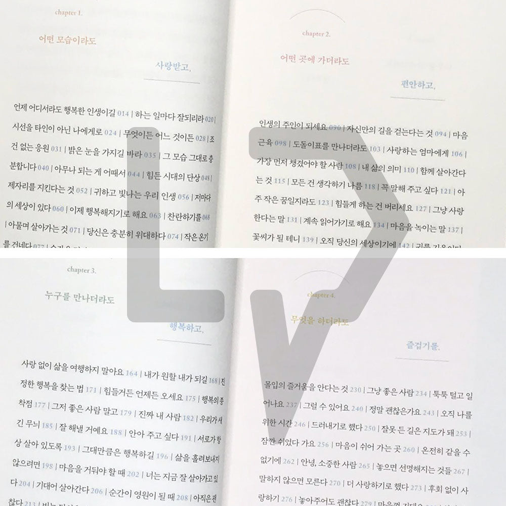 Through this book, readers will gain the strength to rekindle their lives, solid self-esteem that won't crumble, and the courage and glaring hope to start anew no matter who you are, where you are, or what you do. The book is a completely revised edition commemorating the sale of 100,000 copies of <Let's Practice Being Happy>, which was published in 2018.