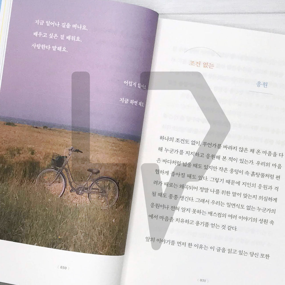 The book, <Good luck with everything you do>, contains the support and hopeful writings of writer Jeon Seung-hwan, who will inspire those who have forgotten their brilliant possibilities and those who are shaking their lives. The author's sincerity is deepened by the combination of warm photographs by photographer Hanbit, who captures the brilliant moments of everyday life that we have missed.