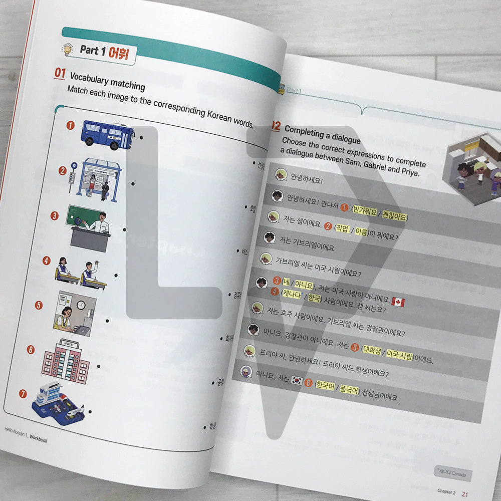 This workbook follows a curriculum suitable for CEFR A1 and TOPIK Level 1.