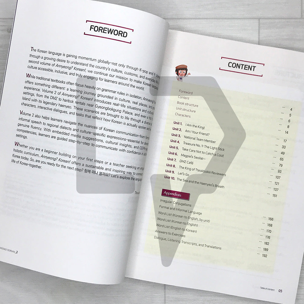 Annyeong? Korean! Volume 2 is designed for learners who have just begun studying Korean to build upon the basics learned in Volume 1, expanding their ability to use a wider range of everyday expressions and communicate naturally in real cultural contexts.